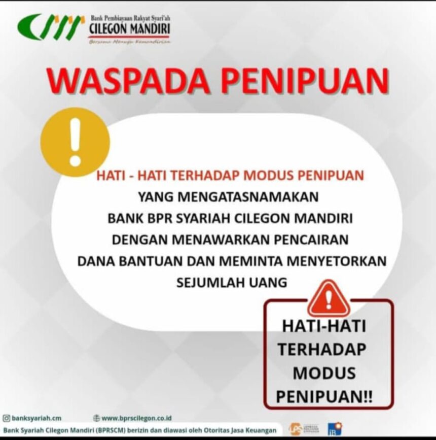 Apabila ada pihak yang mengatasnamakan BPR Syariah Cilegon Mandiri dan meminta sejumlah uang, dapat dipastikan itu modus penipuan,” imbuh Yoka.